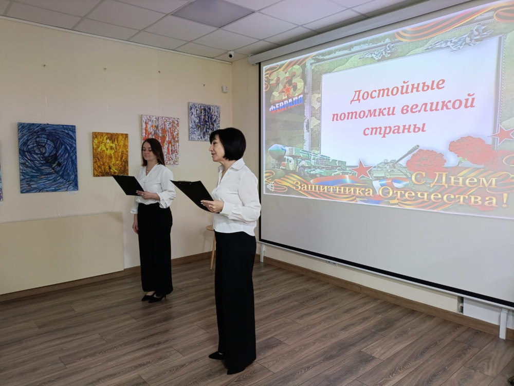 В преддверии праздника сотрудники МУК «Краеведческий музей» провели вечер-чествование офицеров и военнослужащих «Достойные потомки великой страны». В мероприятии приняли участие инструктор гарнизонного Дома офицеров 50-й бригады Росгвардии капитан запаса Сергей Сергеевич Даштамиров, участники- добровольцы СВО Вячеслав Дмитриевич Черный и Денис Николаевич Алексеев.