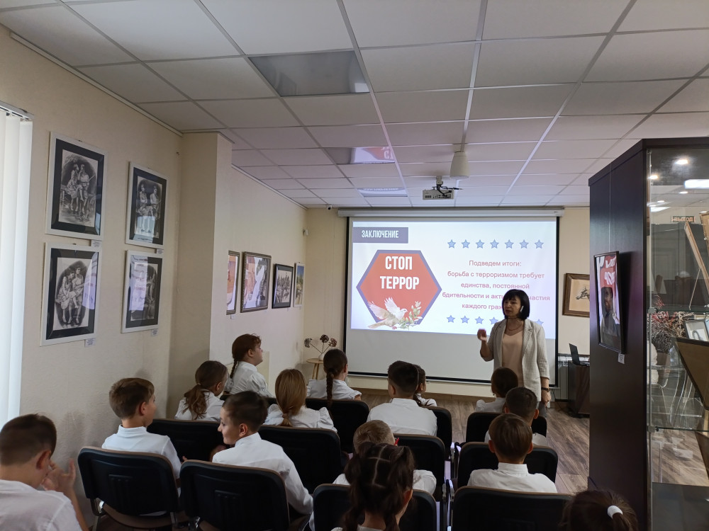 К этой дате сотрудники Краеведческого музея подготовили и провели час памяти «Мир без террора», на котором присутствовали учащиеся МБОУ гимназии №20 и МБОУ лицея №82.